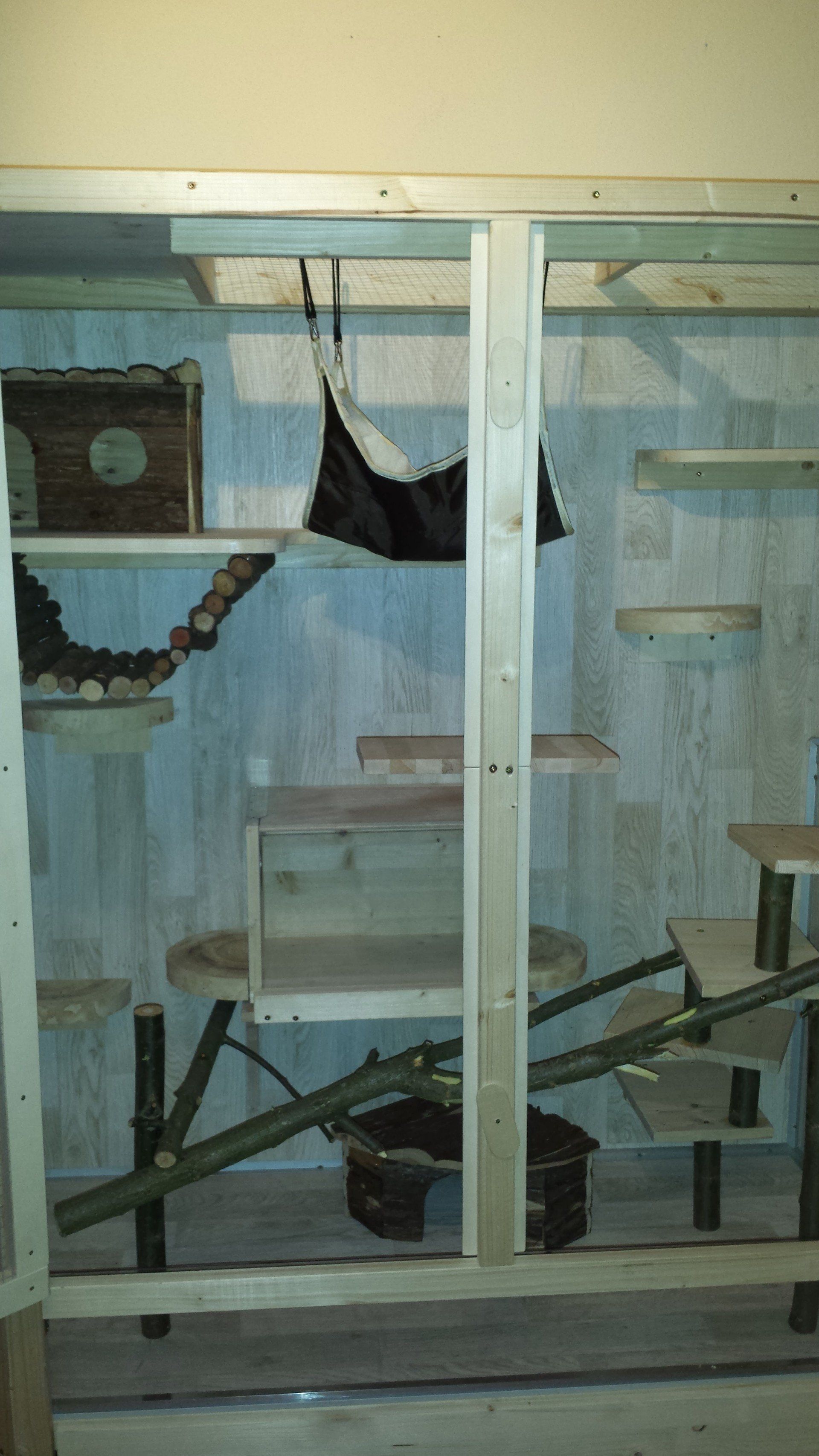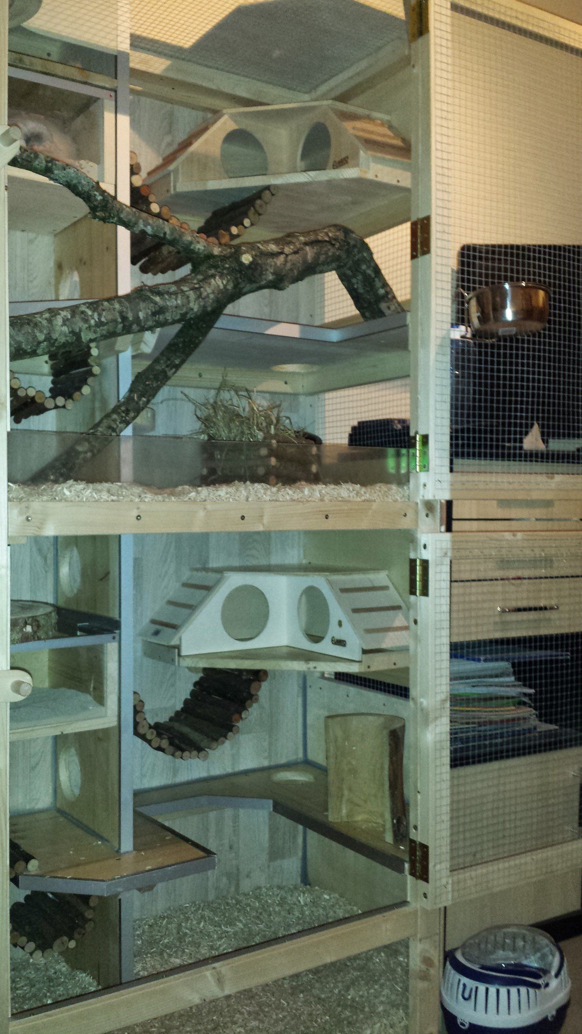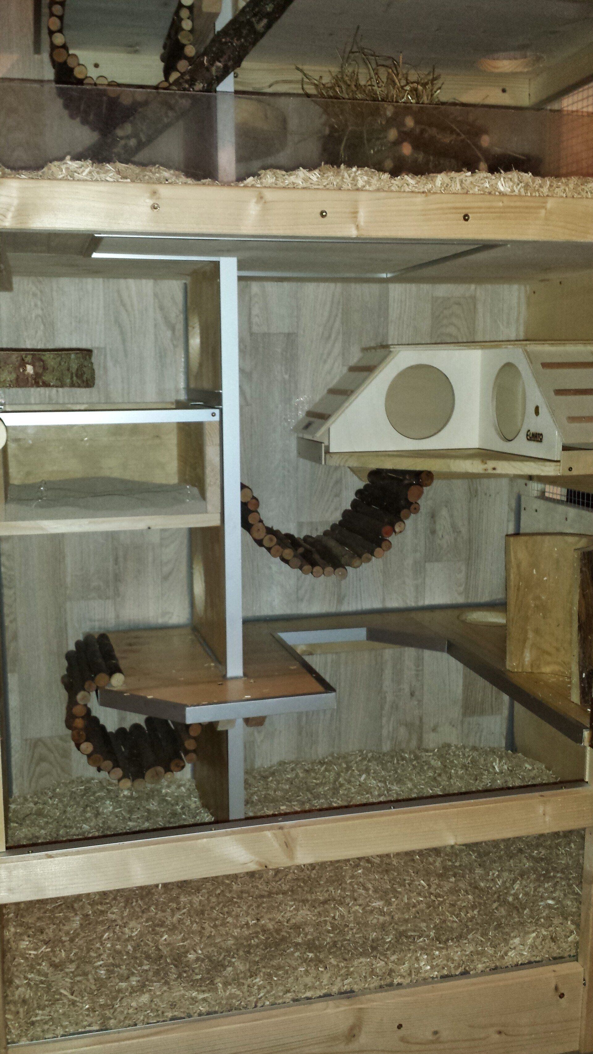 Die Sand-Badehäuschen sind je nach Käfigausstattung in das Inventar eingebaut worden. Am besten ist es, wenn ihr sie zum reinigen heraus nehmen könnt. Der Innengestaltung sind keine Grenzen gesetzt. Beachtet jedoch eine mögliche Fallhöhe. Lieber ein Zwischenbrett oder Ast mehr einbauen, als das ihr einen Abstutz in die "Tiefe" riskiert.