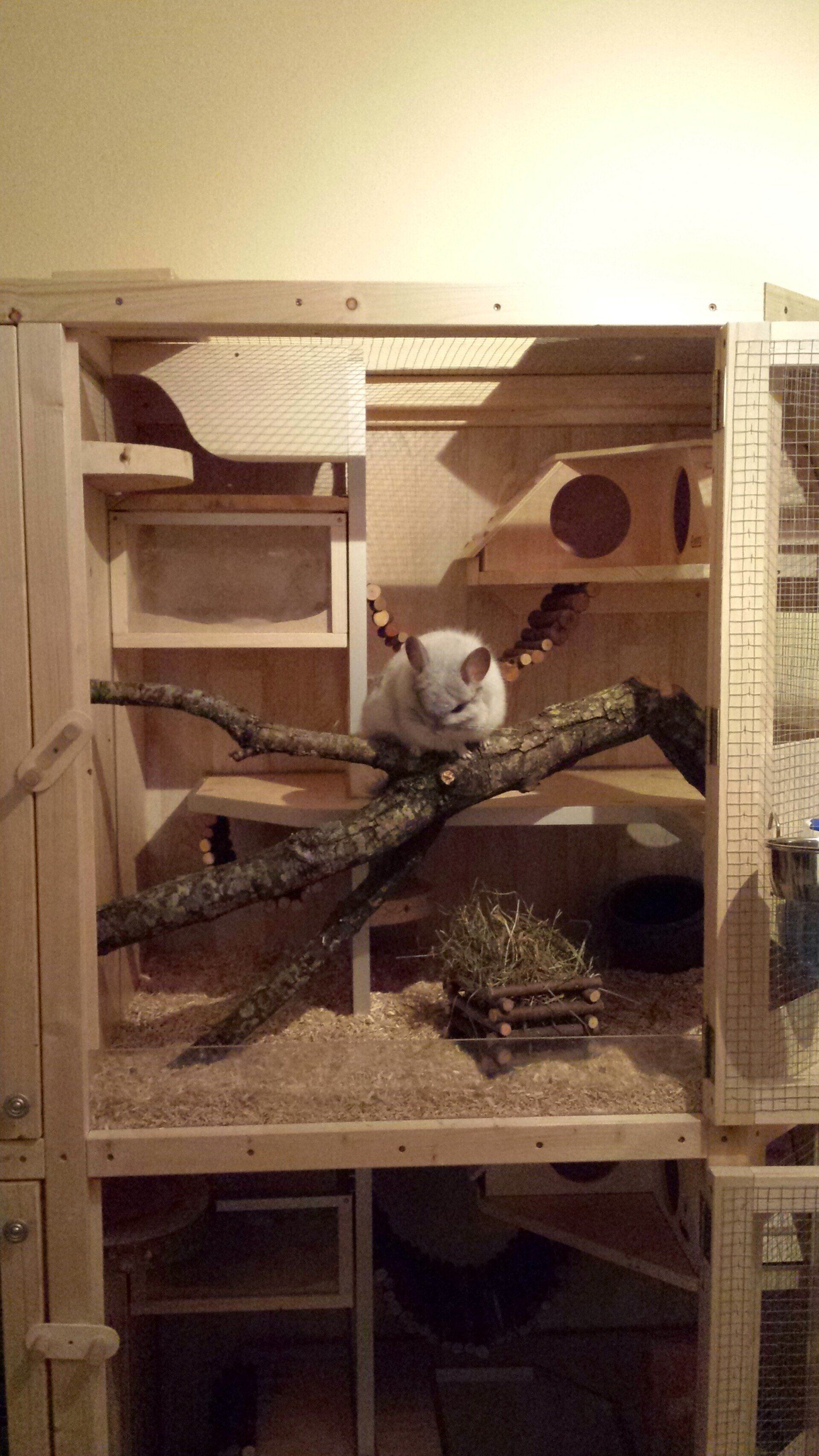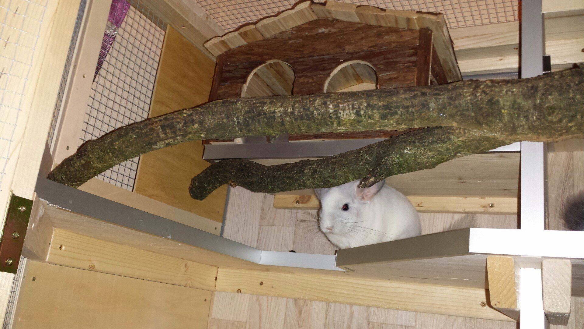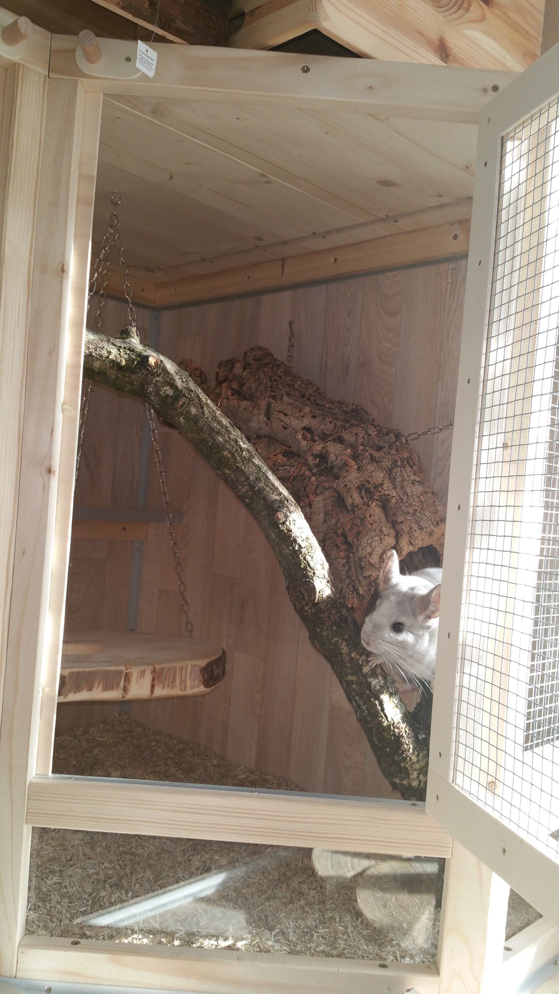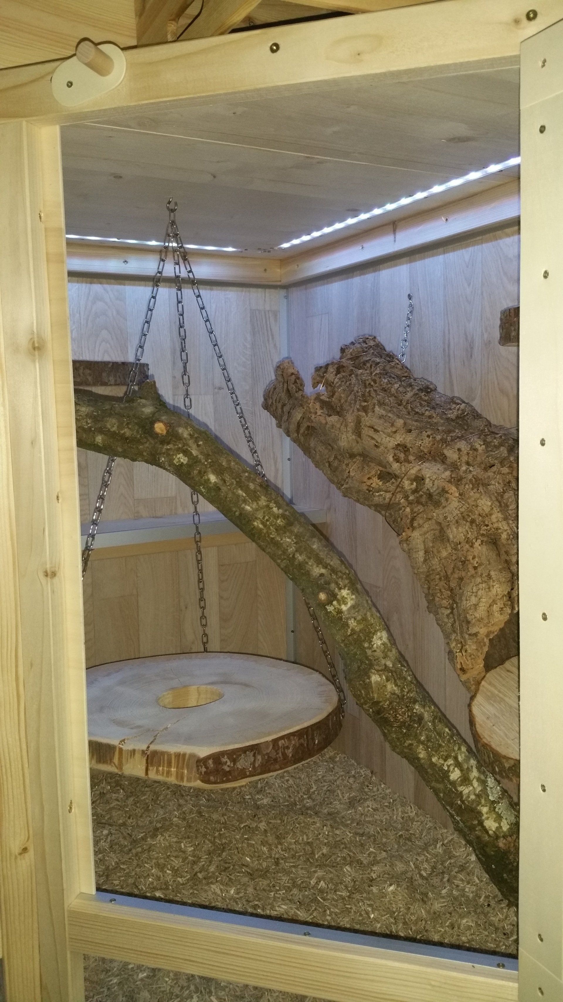 Damit immer die Möglichkeit besteht zu nagen, haben wir dicke Äste und Zweige in den Käfig eingebaut. Diese sind sehr beliebtn und müssen hin und wieder erneuert werden.